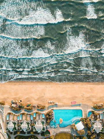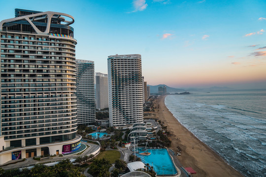 在双月湾入住这家酒店真的超级赞,满足了我们对海景的所有向往。这让我仿佛来到了黄金海岸,吹着 巴厘岛 的海风。我们住的房间面朝大海,晚上可以看到海上升明月,早上可以看到海上日出。虽然是冬天,但是海风却一点都不冷,一波一波的海浪拍打在沙滩上,用无人机航拍画面真的太美了!