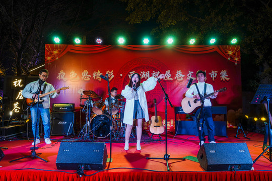 除了苏东坡外,500年前, 江南 四大才子之一的祝之山也曾在 惠州 居住过,而他居住的这条巷,就是祝屋巷。现在这里已经成为了潮流之地,很多文艺小店和创意市集都在这里开设。我们来的时候刚好是12月31日,当地的音乐人在这里举行倒数音乐party,我们也有幸参与其中。