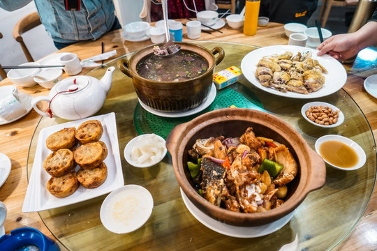 这家店曾经登上过《舌尖上的 中国 》,因此很多人都慕名而来。这里的鸡都是自家散养的走地鸡,所以肉质非常鲜嫩结实,上菜的时候我们都被土窑鸡的香气,诱惑得口水直流。