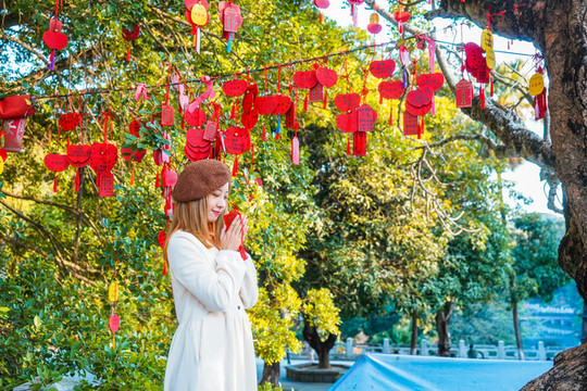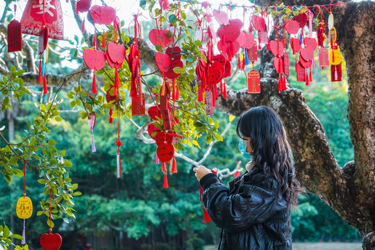 古观的外面还有卖香火和许愿牌的,特别受大家欢迎,整棵树上都挂满了大家的心愿。同行的另外一位小伙伴Nubi也买了一个来许愿,20元一个,虽然我觉得还有点小贵,但是这种仪式感和对美好生活的向往,不是无价的吗?