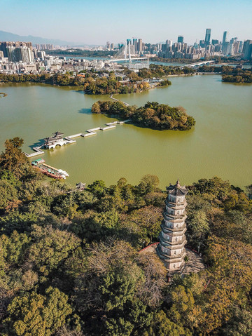 杭州 西湖有一个雷锋塔, 惠州 的西湖则有一个泗州塔,又称玉塔,它是湖上最有历史的建筑物。始建于唐中宗年间,为纪念泗洲大圣僧伽而筑,苏东坡谪居 惠州 时称之为大圣塔。