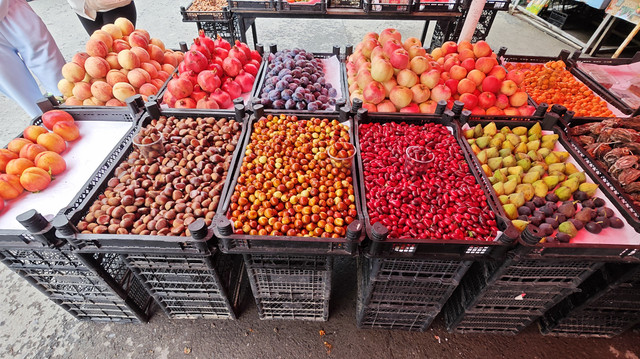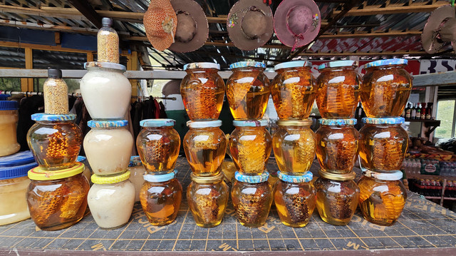 又到一个休息区,好多水果和蜂蜜。