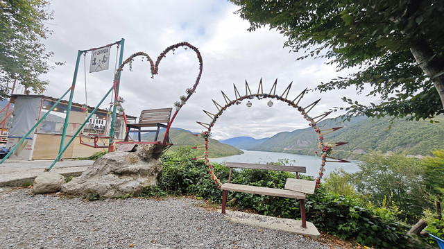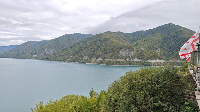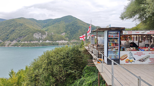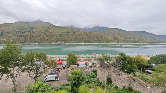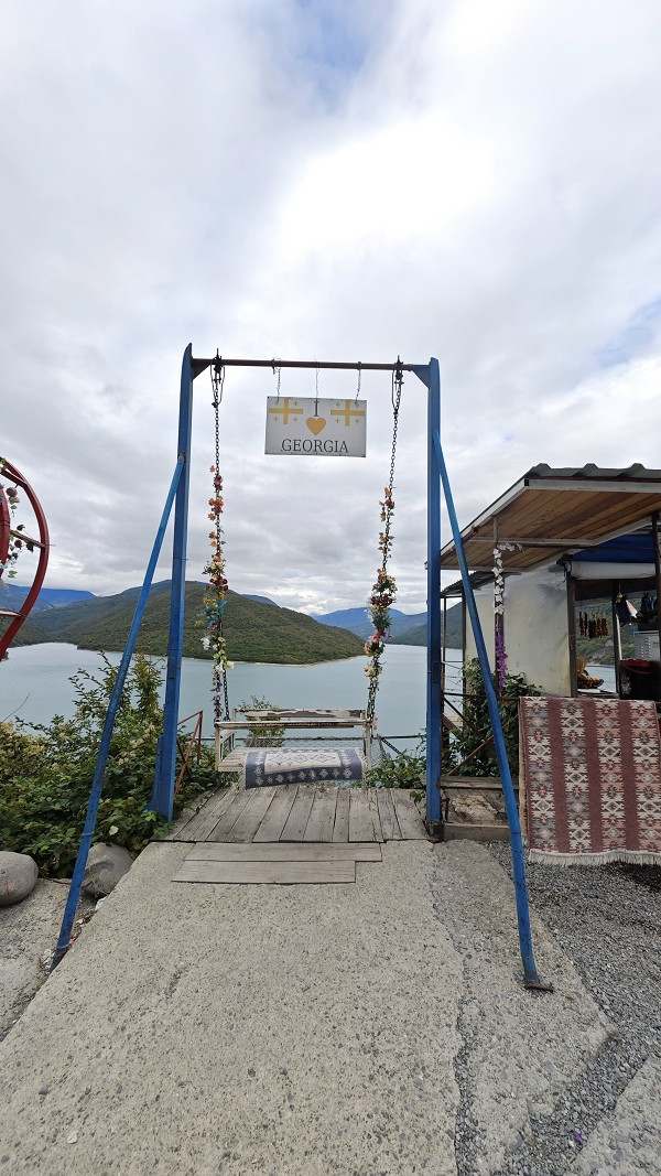 第六站,津伐里大坝水库观景台,眺望湖光山色,尽览美景。商家在观景台设置千秋等设施都标注要收费(5拉里),拍拍照还是挺不错的。