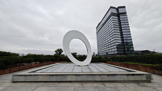 酒店出来两三百米,有一个小广场,天色阴沉沉。