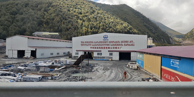 继续前进,途中见到中国参与格鲁吉亚道路建设的营地。
