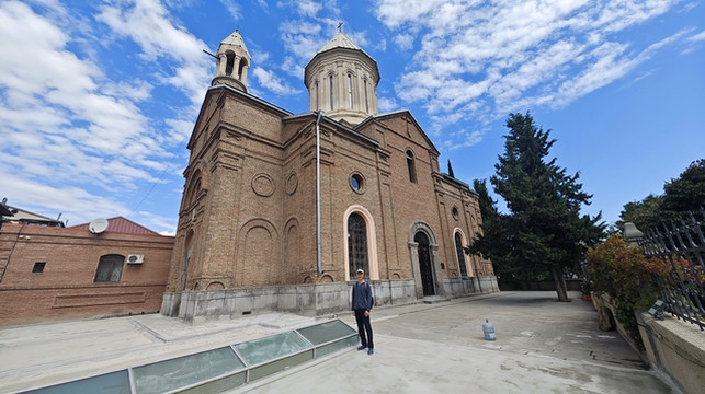 站外有个漂亮的广场和教堂(Tbilisi Ejmiatsin Church)。