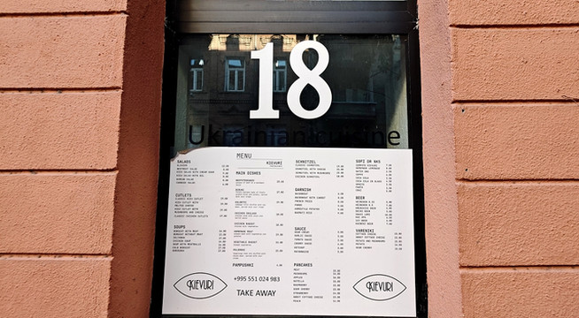 回到酒店附近,发现一家做乌克兰美食的小店,橱窗里的菜单一目了然,感觉不错。