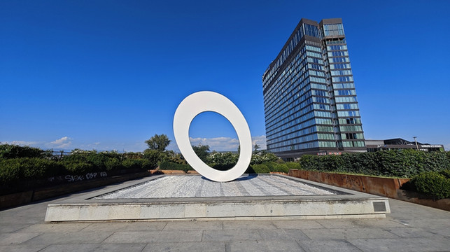 又回到圆点 —— N`UOVO 雕塑,今天看漂亮多了,前天早上阴天,灰蒙蒙的。
