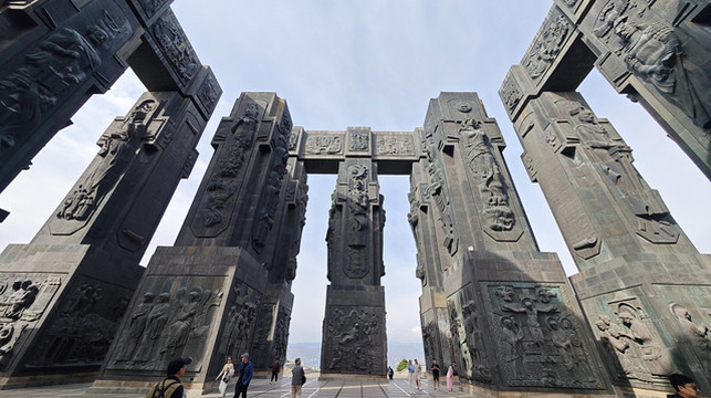 格鲁吉亚纪事纪念碑(Chronicles of Georgia)是位于格鲁吉亚首都第比利斯郊区的标志性建筑群,由16根青铜巨柱构成,纪念格鲁吉亚建国3000年及基督教传播2000年,融合历史叙事与宗教艺术。