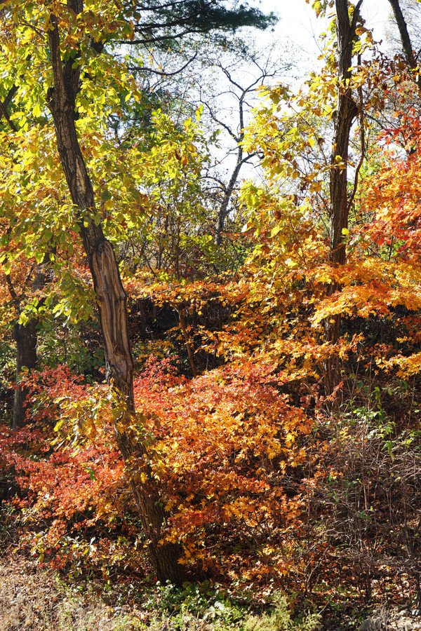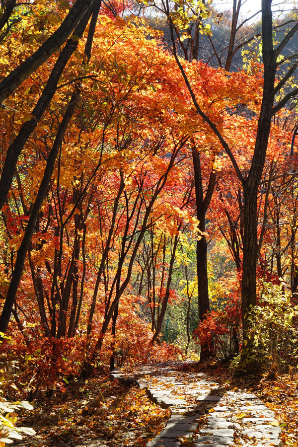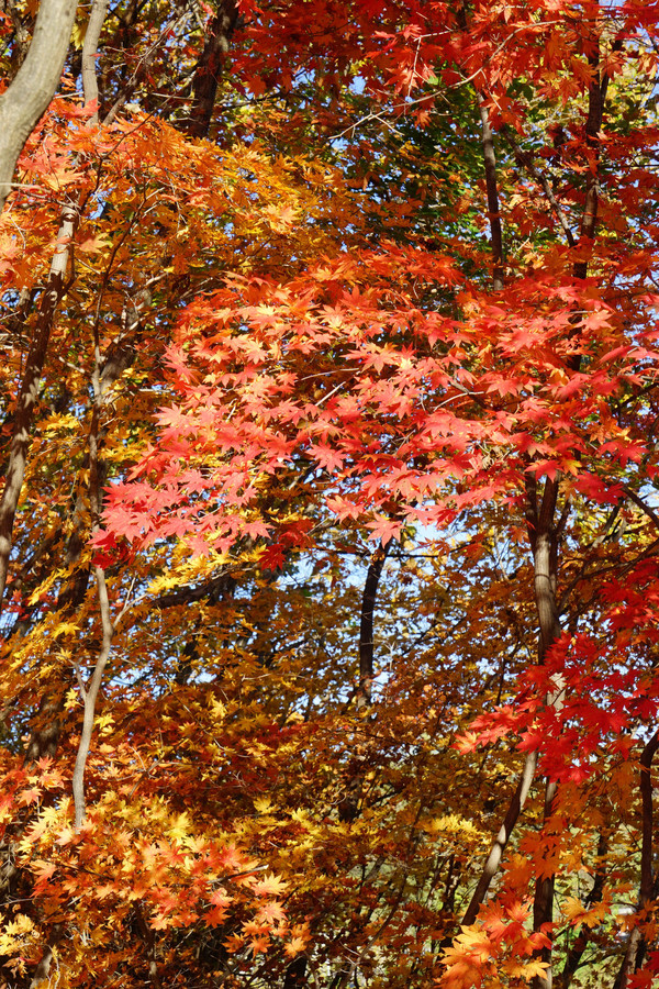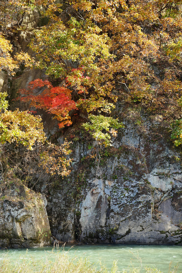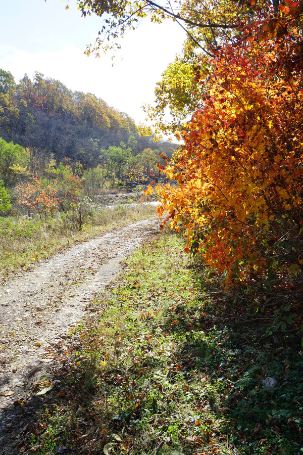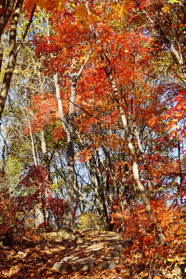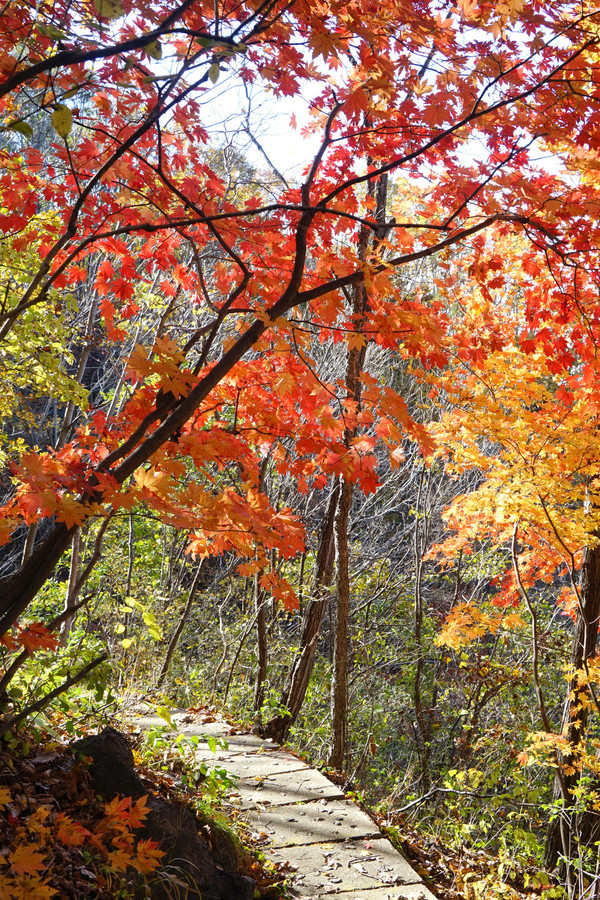 虽然这里以地质独特闻名,但配角枫叶火红,颇有喧宾夺主的气势。