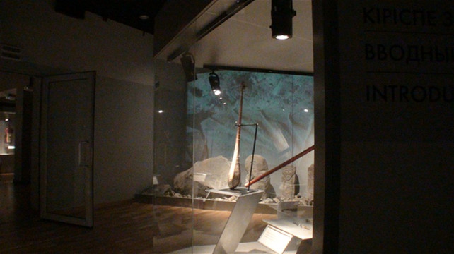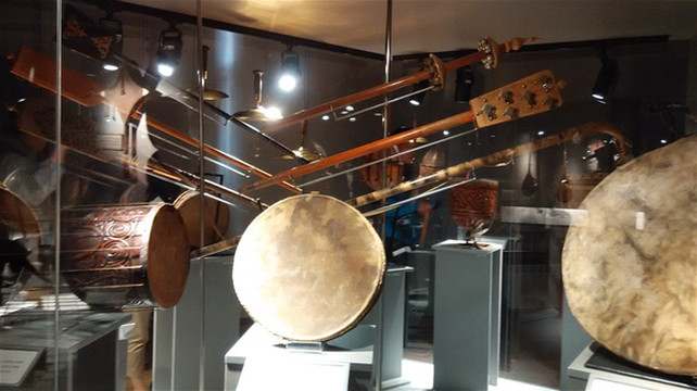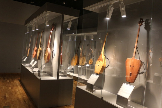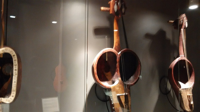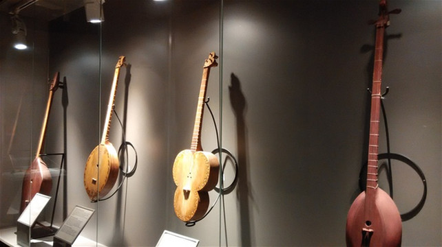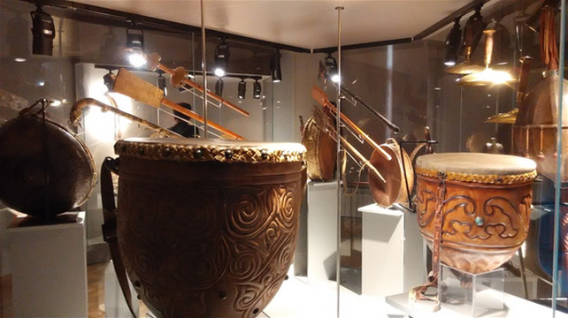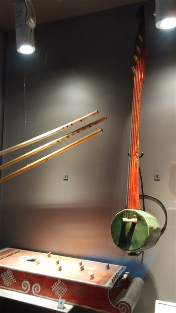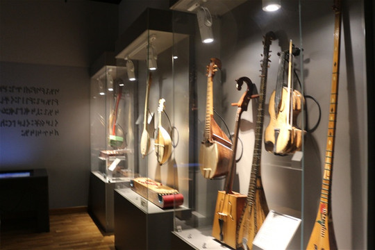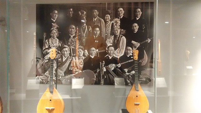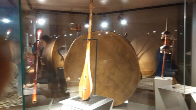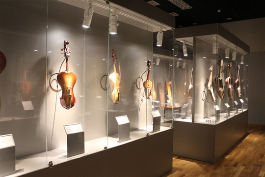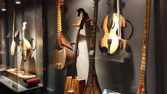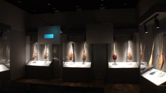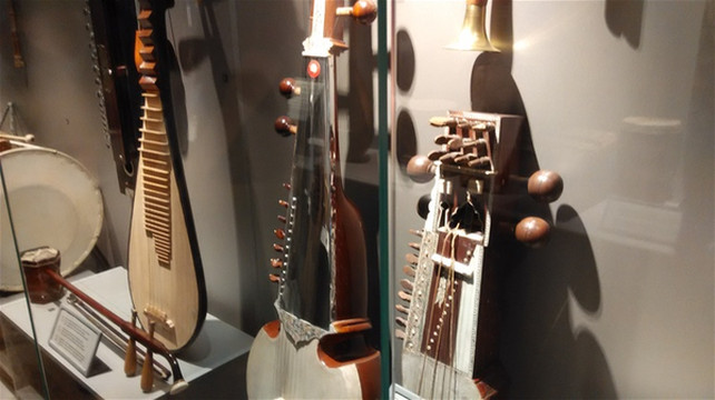 切换为居中添加图片注释,不超过 140 字(可选) 有一个展厅展览着各国传入的乐器。