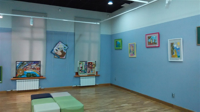 编辑添加图片注释,不超过 140 字(可选) 博物馆的一个展厅里展览着儿童画。