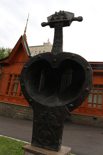 切换为居中添加图片注释,不超过 140 字(可选) 博物馆是一排黄色平房。门前有一个乐器的铜雕塑。 中亚地区自古音乐发达,发明了不少的乐器和乐曲,对中国古代音乐影响深远。