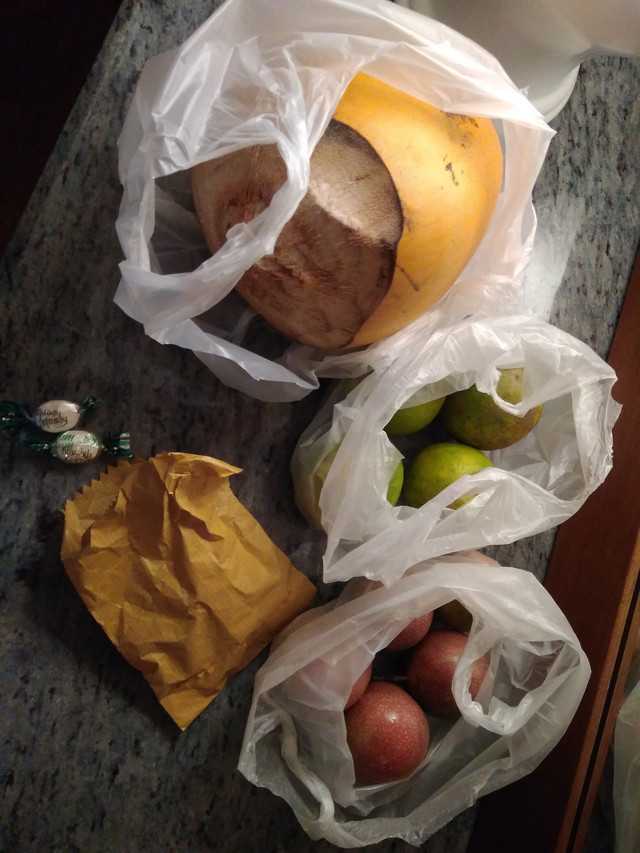 当天傍晚住进酒店后,导游照常不见了,于是我就出门随便逛逛。路过一个水果摊,进去居然看到有苹果(from china)。不用了,我千里迢迢来斯里兰卡吃中国进口苹果。我买了百香果和金椰子。回来的巷子里看到一家陈旧的糖果店,糖果都是一个个透明的塑料罐头里散装放置的,想起了小时候,小店员用一个纸袋很仔细地给我包了一点。