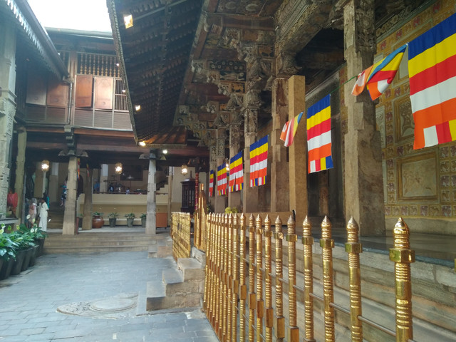 佛牙寺应该算一个小型建筑群,很漂亮。我尤其喜欢斗拱、飞檐、天花上的纹饰。寺院后面有个展览馆,存着不少象牙雕刻制品,还有一些棕榈叶做成的书册。(题外话,导游说佛牙寺对面是个著名的卖宝石的商店。我在门口买了金椰子,非常可口!)