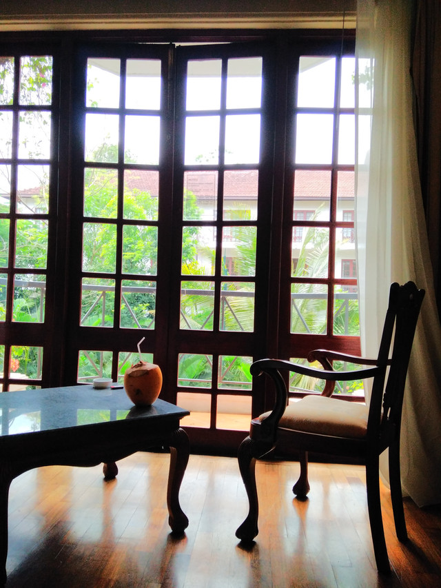 插曲:我的金椰子因为不是当场就吃,水果店小哥就给我削了一个顶,然后示意我回酒店用刀一戳就好,结果我用小小的瑞士军刀半天没开出来。只能带着我可爱的金椰子去找酒店服务人员。我在游泳池边找到一个酒保,他热情地抽出一把刀,然后刀断了……(那时我还不知道刀不能拍蒜,当然知道也不在乎,又不是我家的刀。)他无奈地看着我,我无辜地看着他……他抽出了另一把刀……OK,男人有时候就不能太tender。
