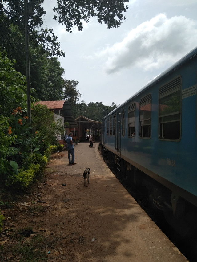接下来一早去坐小火车去努沃埃利亚,行程的卖点之一。这不就是绿皮火车吗,其实我不太懂兴奋点在哪?让我又记起一次从新余回上海的慢车经历,整个晚上我都在和旁边没有买坐票的大妈争夺半个座位。斯里兰卡的火车至少空一点,还有车站上小卖部的铺板很古早。