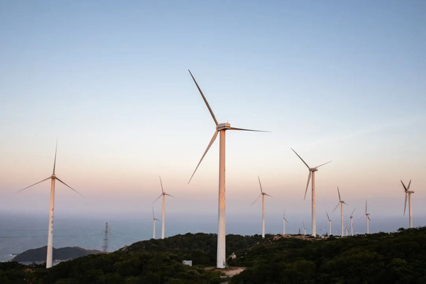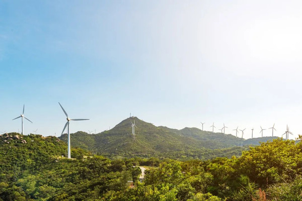 远远望去,连绵起伏的小山坡上是错落有致的白色风车,风一起,缓缓转动的风车如诗如画。