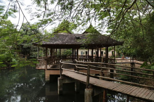 傣族村寨位于西双版纳傣族园景区,距州府景洪市28公里,景区内有曼将、曼春满、曼听、曼乍、曼嘎五个傣族村寨。我们来到一个临山而居的村落,山上遍植橡胶树,据说是当年上海知青所栽种。接待我们的哨哆哩艳,看上去窈窕淑女,实际上已经40多岁,儿子已经成婚,她领着我们先环村一周,再落坐她家,一边听她介绍傣族的风土人情和银制品,一边喝茶、品酒、刮痧。