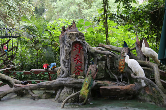 奇花异卉园占地不大,引种、栽培观赏植物300多种,如闻歌起舞的跳舞草,使酸变甜的神秘果,五彩缤纷叶形各异的洒金榕,形似鹰爪的山指甲,以及赫蕉、叶子花、佛肚树、菠萝蜜和泰国无忧花等,置身园中,奇花异卉争奇斗艳,常开不败,让人陶醉。