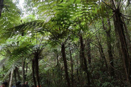 犀牛坪国家森林公园、野象谷和西双版纳热带植物园,既有共性,又有明显的不同。地处热带与亚热带过渡地区的普洱犀牛坪国家森林公园,森林覆盖率达94.5%,有着夏无酷暑,冬无严寒的宜人气候。这里有植物绞杀、藤本植物缠绕现象和老茎生化、结果等奇特景观,还有中华桫椤、苏铁厥、大叶木兰、黑黄檀等国家珍稀植物。这是一个有趣的行程,我们沿着游览路线,一边徒步,一边听地陪导游的介绍。