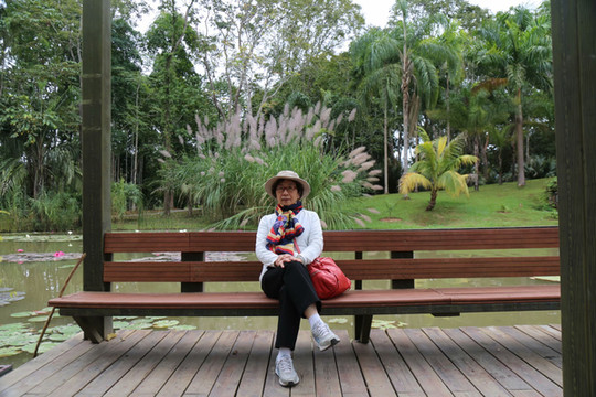 受制于时间,我们主要游览了棕榈园、苏铁园、国树国花园、名人名树园和奇花异卉园。棕榈园内收集和保存来自国内外热带地区的棕榈植物460多种,成为世界棕榈种类收集最多的园区之一。这些棕榈植物千姿百态,成为热带雨林的重要标志。苏铁植物是一群古老孑的植物,几乎所有种类在中国和全世界都被列为重点保护植物,被称为活化石。