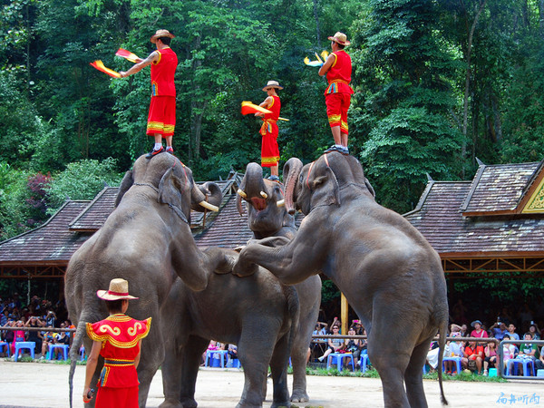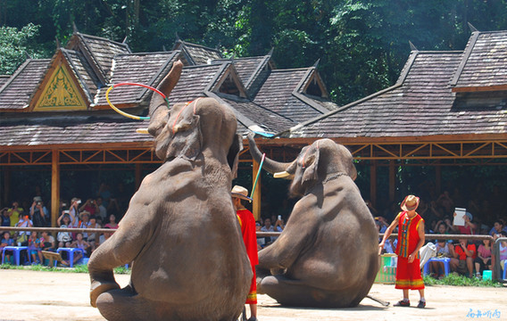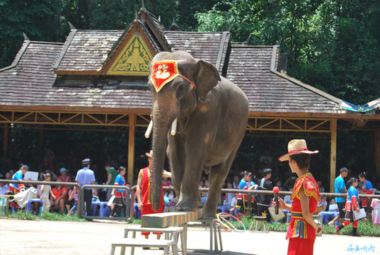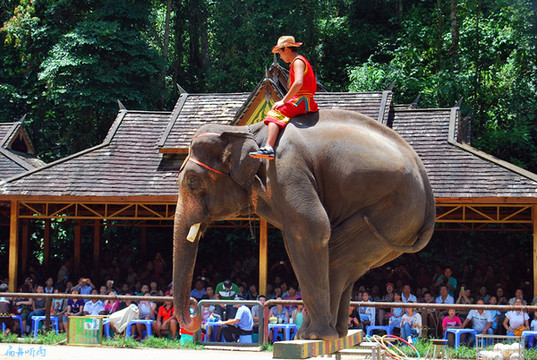 在我国,能看到野生大象出没的地方惟有西双版纳。野象谷是亲眼目睹野象群的地方,不来野象谷,肯定看不见野象,来了野象谷,大抵也看不到野象,野象并不和人类相约会见的时间,能不能看见,全看个人的运气。看野象,靠运气,而看驯养的大象表演,则完全可以定制。对大多数人而言,大象表演也是一场视觉盛宴。
