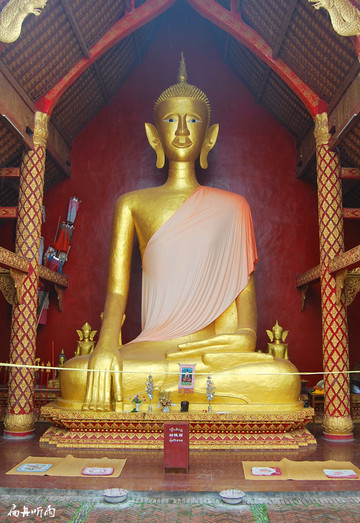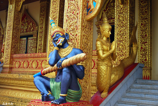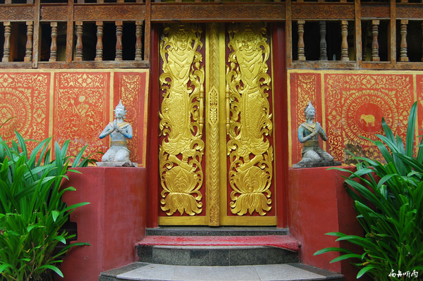 西双版纳与缅甸山水相连,在这里世代繁衍的傣族与泰国、缅甸的主体民族都信奉佛教的分支小乘佛教,因此,相比中国的主体文化而言,西双版纳的文化呈现出一定的异域文化特征。供奉佛的寺院在这里比比皆是,又因为居民对佛的无限虔诚,这里的寺院都是最漂亮的建筑,整洁、肃静、美丽是寺院的特征,寺院里的佛像也都无比的尊严、持重、唯美。有一种说法和泰国、缅甸一样,有钱了,要先修寺院,积德行善。