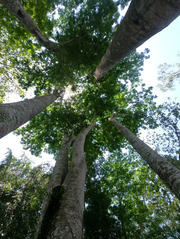 巨树森林!相貌普通,但每一棵都是直指苍穹欲,与天公试比高!这里就是和望天树一样的各种龙脑科植物,都是四五十米的高个儿。树干细长,植株密度高。在这么一片 高树 组成的园林里步行,是有生以来第一次。
