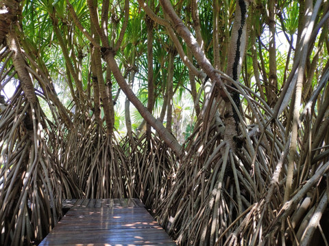 旁边的露兜树,长在水中,根系重重叠叠像网一样,实在奇特。南澳岛田仔湾就有一株,长在山腰,还有他们神奇的果实,太像菠萝了,据说能吃,但看着就跟有毒一样。
