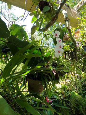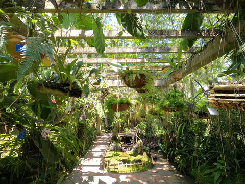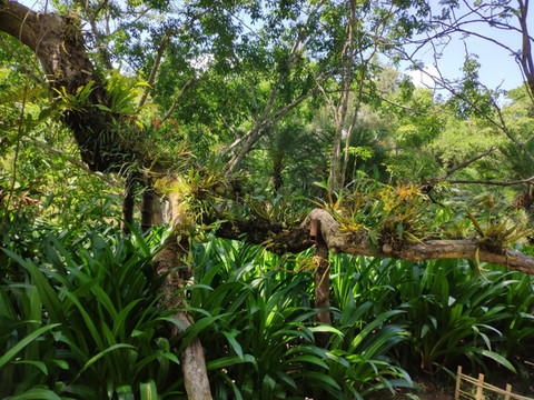 这里,让我看到了兰花的原始生长环境。它们是生活在热带雨林 大树 上的,很多树干的枝桠处,是兰花喜爱的生长环境。这里环境整体偏阴湿,兰花大多被安排种在木桩上。
