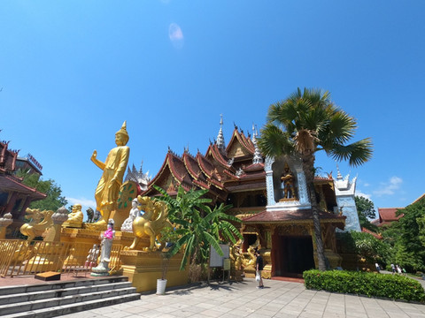广场后面,有导览图,规划了线路,先去傣王行宫。那几栋都是金碧辉煌的建筑,一方大王的宫殿,虽只有一两层,但也大气。