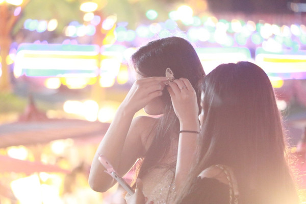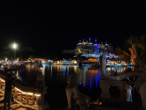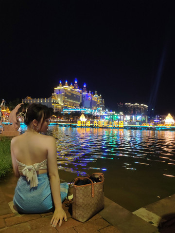 在这里,遇到两个 潮汕 老乡,来自 惠来 ,看到她们在拍照片,打招呼后也帮忙拍了一些。不过夜晚如没有好的机位和辅助打光,是非常难拍的,没三脚架则没法长曝光,只能调低曝光时间提高IOS,噪点明显。