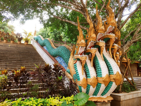 这是什么文化?这些龙和 泰国 的大皇宫里面的龙一样,都是多龙头的, 泰国 的宫殿记得是个大龙,龙爪是小龙头。傣族这一片区,是南传佛教,寺庙的龙指的是娜迦,是 澜沧 江(湄公河)里的龙神, 泰国 也是供奉这位龙神,跟国内的龙其实也一样的道理,但造型确实有所区别。