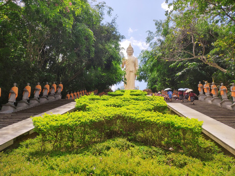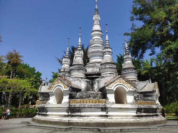 曼听公园曼听公园,当地的皇室园林,周总理也曾来过这里和傣族人民一起泼水纪念。门票40,入园是一个大广场,有周总理参加泼水的雕塑!雕像旁是白墙,书有“周总理一九六一年参加泼水节纪念”。旁边是高瘦的棕榈植物。天气真好,雕像、白墙、棕榈、蓝天,夏日的感觉。