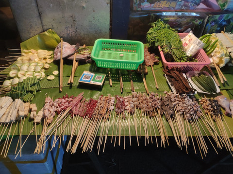 回到旅舍,晚饭和夜市的这些根本填不饱肚子啊,于是洗漱好,下楼撸串。