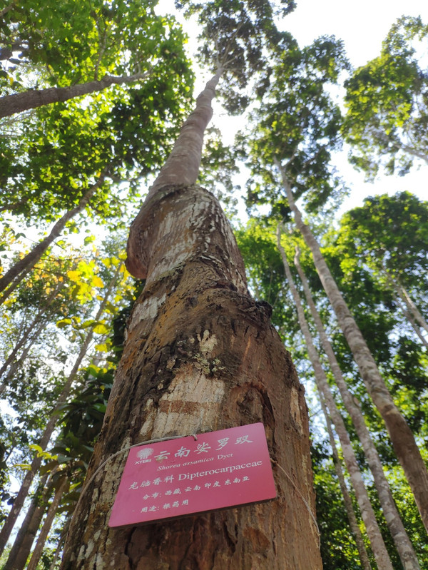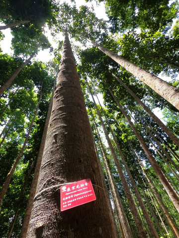 旁边,就是望天树了,名字起得真好!特别高,40-60米,需抬头仰望。这是热带雨林的标志树种,龙脑香科,目前只有 云南 、 广西 、 海南 、 西藏墨脱 有分布,其是证明我国有天然热带雨林的重要依据。