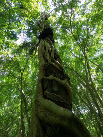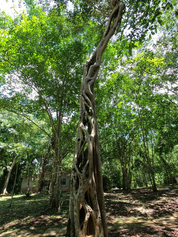 这里有一棵绞杀榕,特别大,特别乱。看着那些无序而有力的榕树干缠绕向上,很震撼,感慨大自然的力量。