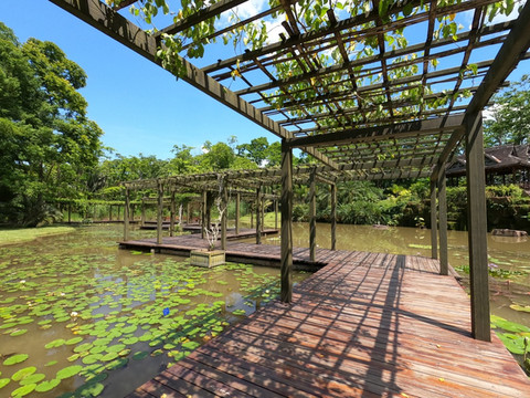旁边也挨着水上植物园,这里最知名的莫过于王莲了,能承受一个成人的重量,即荷叶上面可以站人哦!可惜去的时候季节不对,都还没发芽呢。