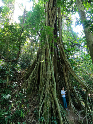 旁边还有其他龙脑香科的植物,都很高!天呐,热带雨林的 大树 都是巨人,跟我们东南沿海山林里看到的不到10米高的树林对比,天差地别。