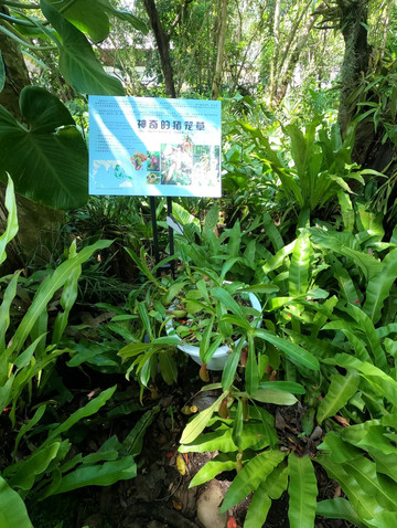 ③【望天树】从藤本园过来,经百草亭、南药园。很多草药,像是个苗圃,有我们熟知的车前草,还有飞天蜈蚣、田七等。还有龙血树,乱入。