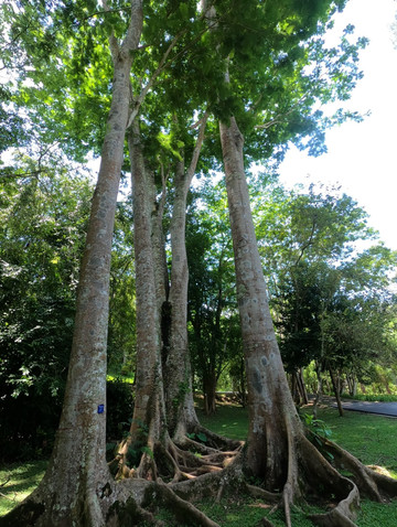 榕树还有气根,我们常见的那种榕树,气根的功能主要是作为支柱,不像绞杀荣的根,能扎到泥土底下吸收养分和水。此外还有板根现象,东区有好几棵有。