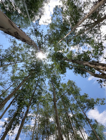大家如果看到过仰望角度的白桦林图片,就是那种躺着往上看的感觉,而这里站着抬头往上看就好了!