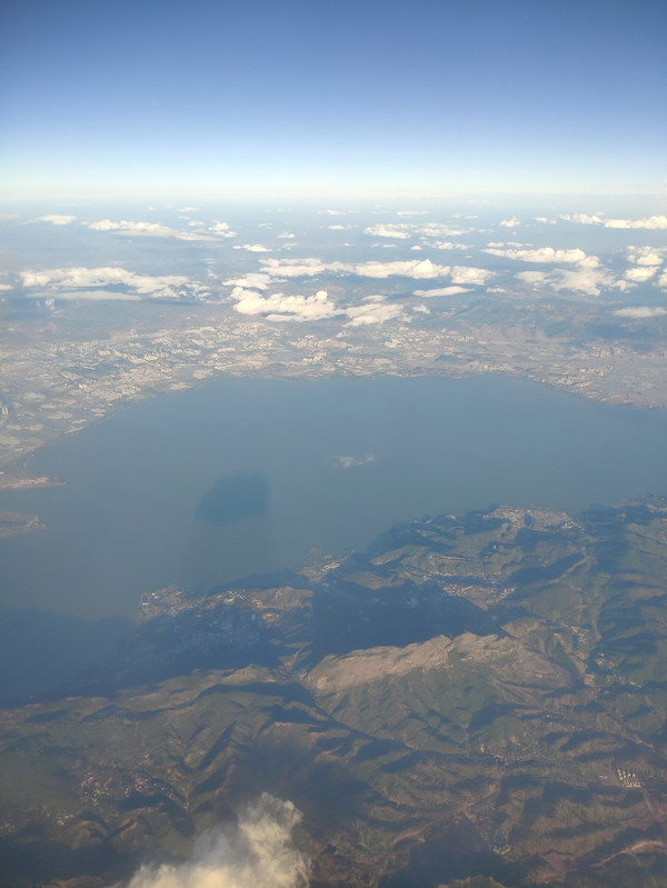 3点多回旅舍整理行李,然后赶往机场。飞机往北飞,在天空俯瞰滇池, 云南 这片热土,多彩!