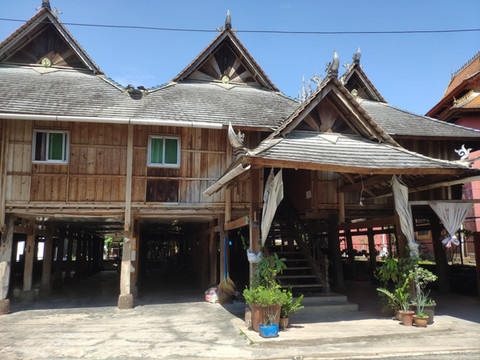 傣族木屋,一楼基本不住人,地处热带,野生动物多,一楼湿气也重,所以才有这种建筑选择,有点像吊脚楼的那种感觉。这里热带水果很多,菠萝蜜、芒果随处可见。