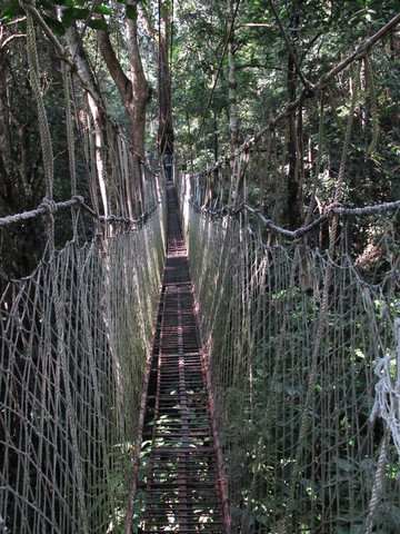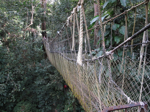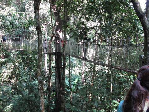 在这山上有一段树与树之间架起的简易桥,供游客们体验在原始森林里行走乐趣。