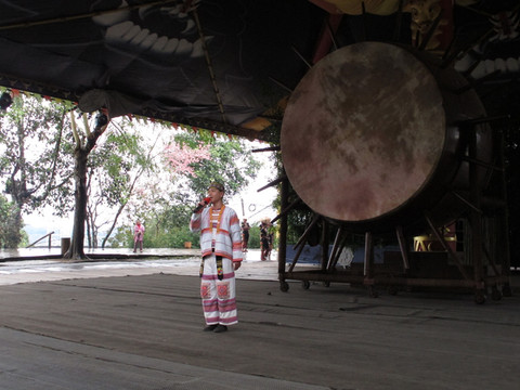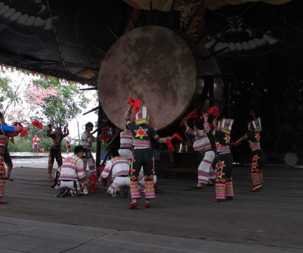 基诺山寨的入口形状像个大鼓,大鼓是基诺族的吉祥物。