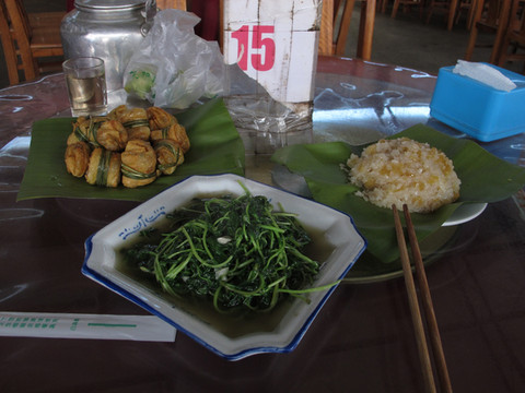 出了村子,夏师傅带我们去吃了傣味。说句实在话,吃一次还可以。