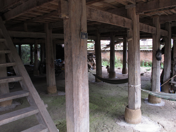 傣族的民居与基诺族相差不多,都是一楼仓库和饲养家畜,二楼是居住生活空间,所不同的是基诺族看上去较原始。