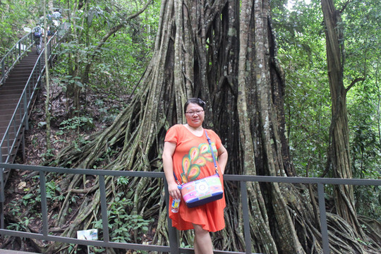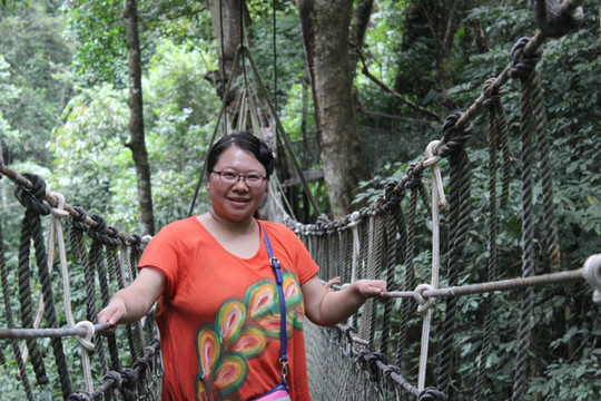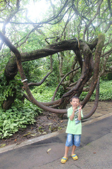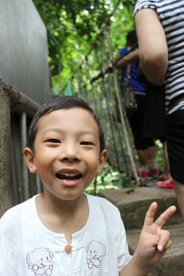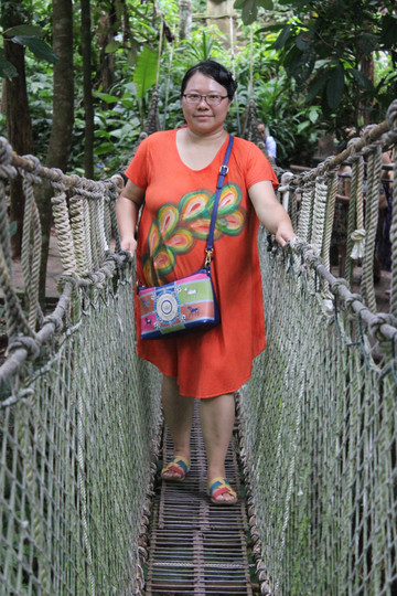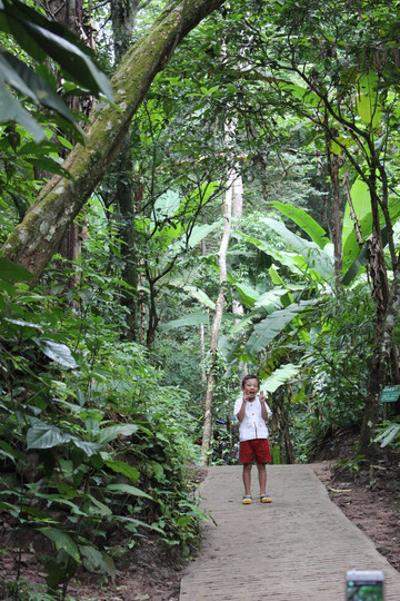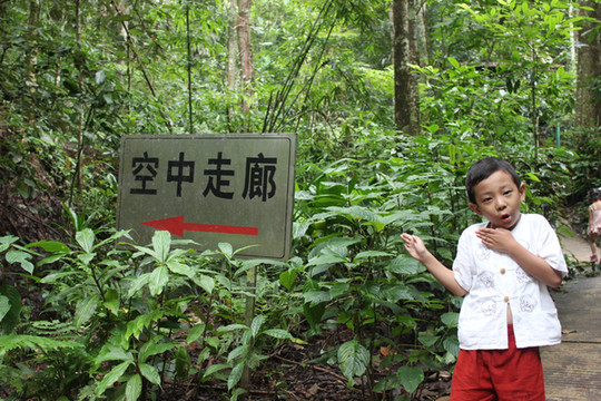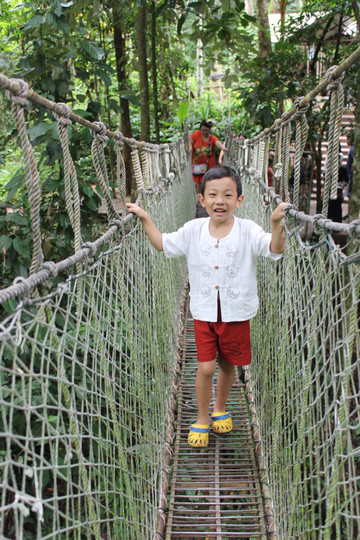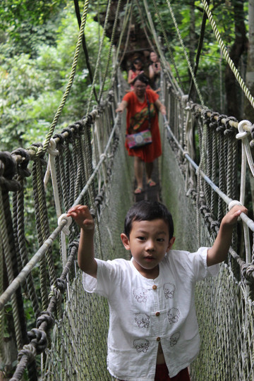 参观山寨,导游会给你准备当地自产的猪肉,玉米,红薯吃,填一下肚子了。下午去了热带雨林,热带雨林谷里面有表演,也有空中走廊,我们最感兴趣的当然是空中走廊了,这个也是景点之一,在版纳,单独的空中走廊景点距离版纳140公里,差别就是高度和长度,既然这里有,我们就没去单独的那个景点,又省了时间和费用,呵呵。